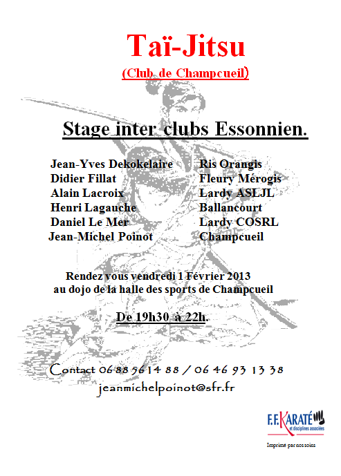 Rendez vous vendredi 1 Février 2013 au dojo de la halle des sports de Champcueil