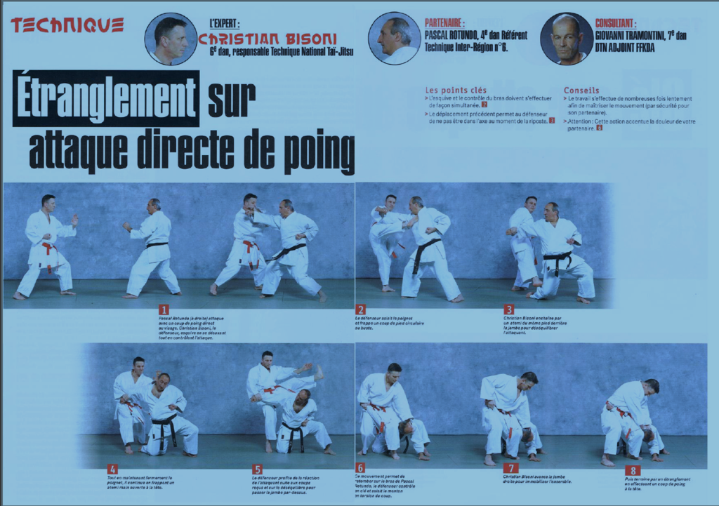 Étranglement sur attaque de poing : Christain BISONI (6ème DAN Taï-Jitsu, Responsable Technique National) et Pascal ROTUNDO (4ème DAN Taï-Jitsu, Référent Technique Régional)
